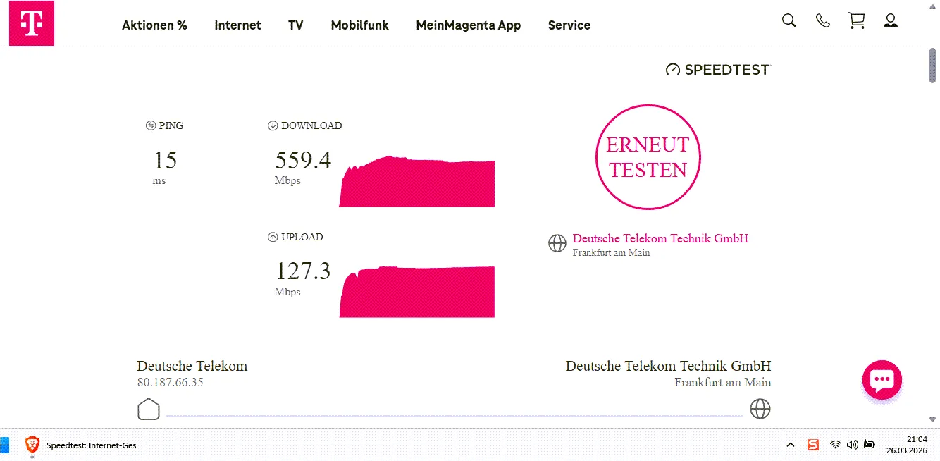 Da habe ich wirklich glück und kann jeden Tag träumen - volle Brandbeite über das 5G-Netz ...